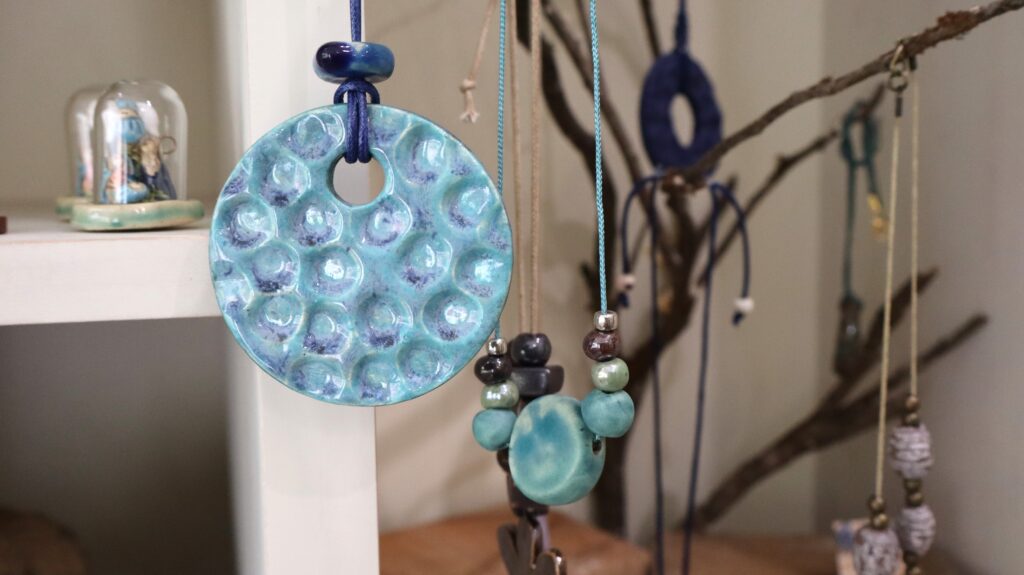 Valorizamos a produção local com uma base sustentável, utilizando matérias-primas genuínas dos Açores: o barro da ilha de Santa Maria, a cera de abelha de S. Miguel, as escamas dos nossos peixes, o leite de burra da ilha Graciosa, as folhas de milho, e as castas vinícolas do Pico e S. Miguel. Cada peça carrega a história, a alma e o respeito pela natureza açoriana. Venha sentir, ver e levar consigo um pedaço autêntico dos Açores
